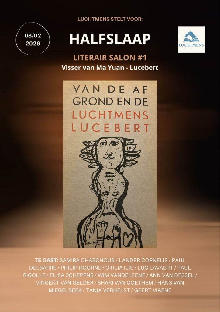 Zondag laatst 8/2/2026 was ik een van de blije genodigden tijdens het eerste literair salon van ‘Luchtmens‘ Edward Hoornaert. En zo kan men zich een uitstekend geslaagd literair salon nog het best voorstellen: een zondagvoormiddag met dichters die zich een voor een lieten inspireren door een vooropgezet thema. Dit keer was dat het thema van ‘de halfslaap’ én het gedicht ‘Visser van Ma Yuan’ van Lucebert.